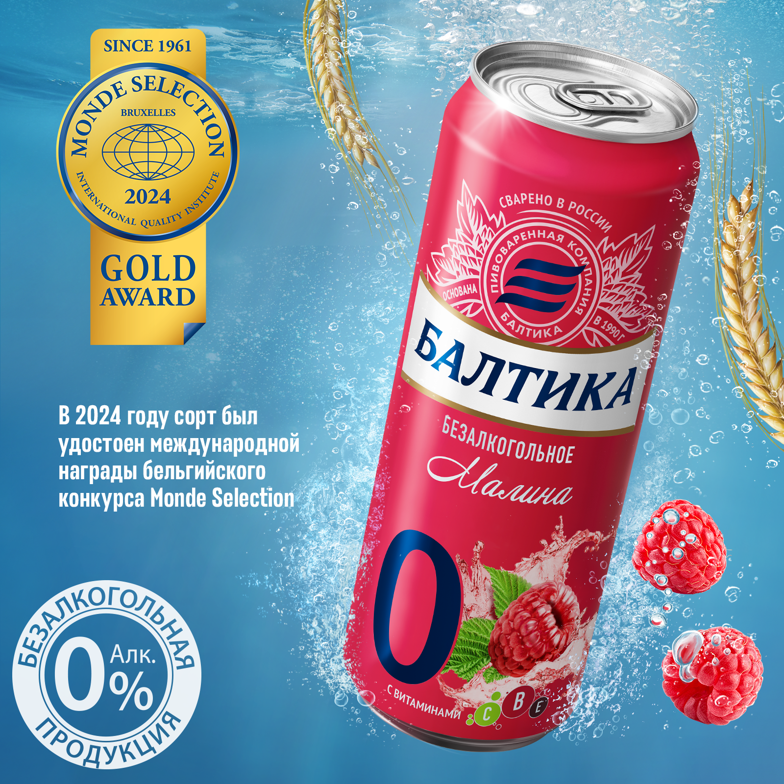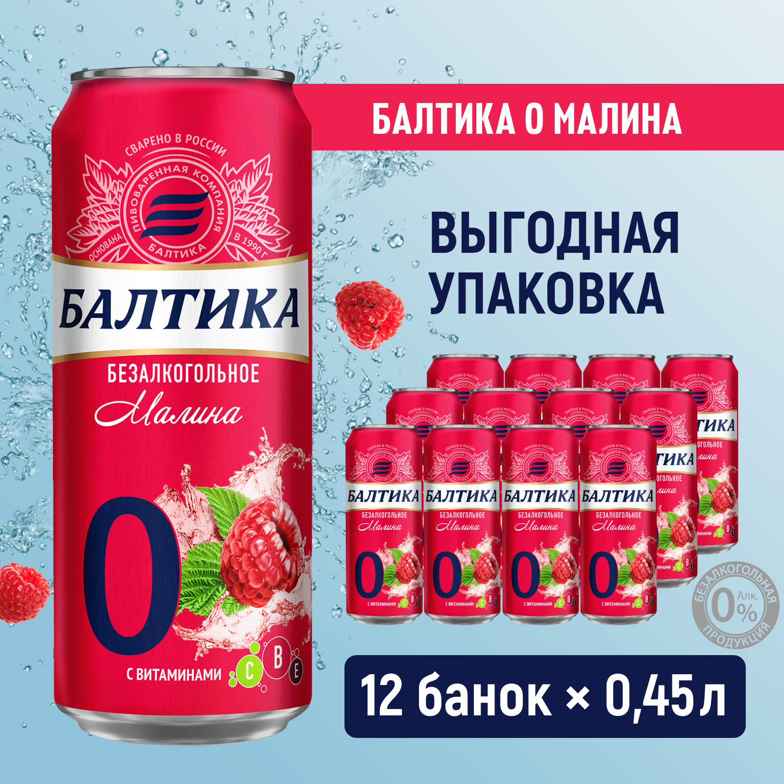 Пивной напиток Балтика №0 Малина безалкогольное, 12 шт. х 0,45 л, банка информация: