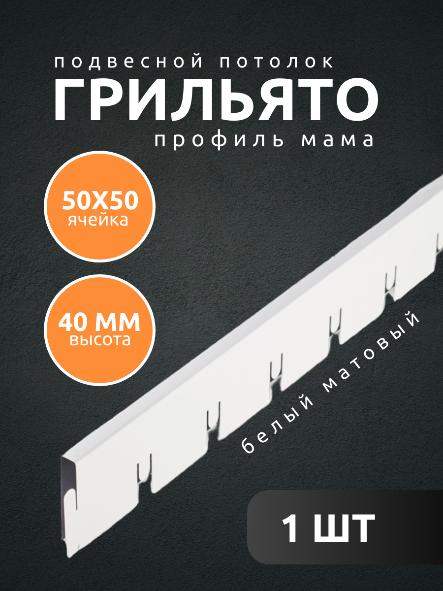 Профиль грильято Албес мама ячейка 50х50х40 мм длина 600 мм белый матовый 1 шт информация: