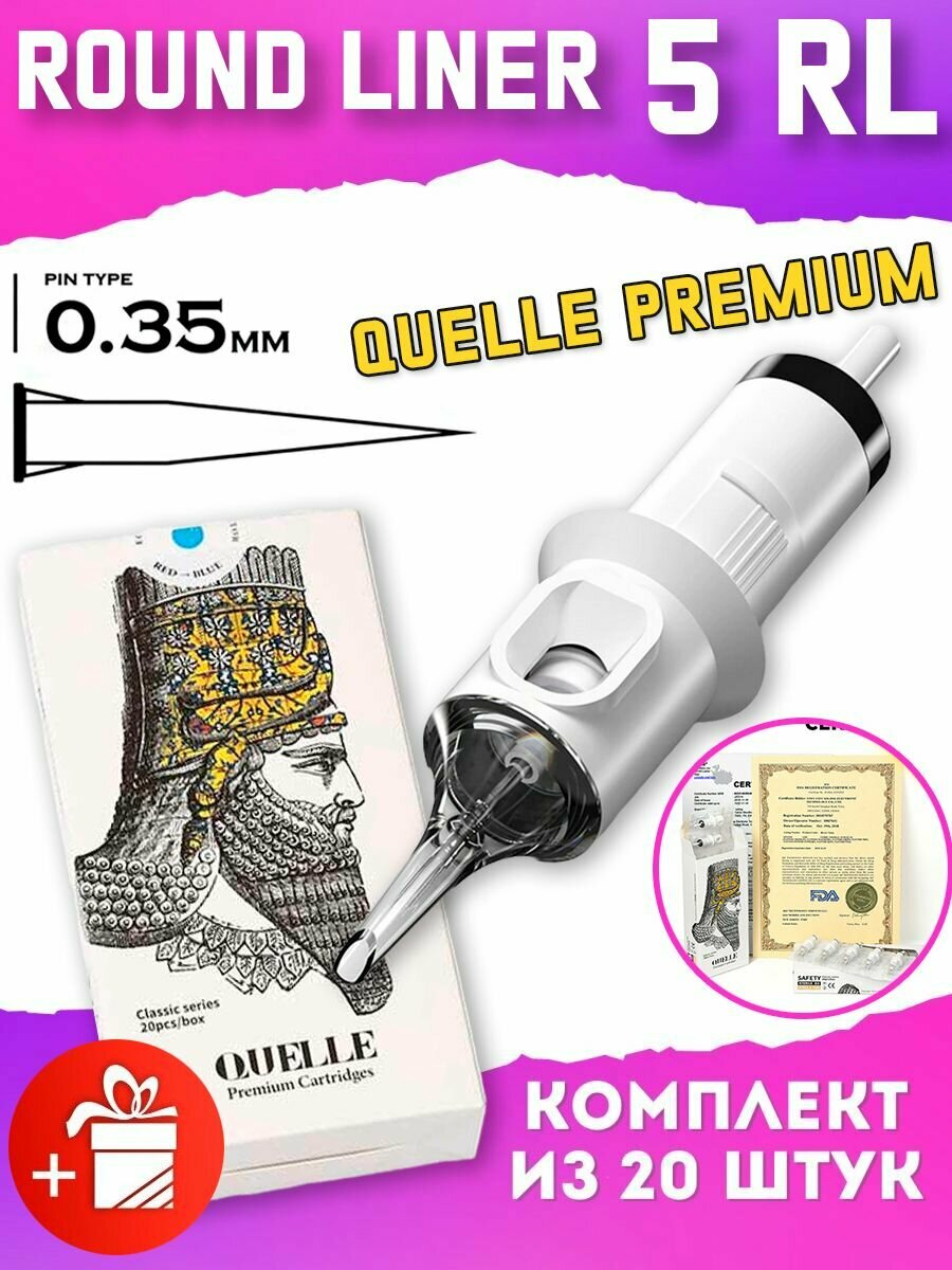 Картриджи для тату и татуажа QUELLE Premium Round Liner 35/05RL 0,35мм - 20шт/уп информация: