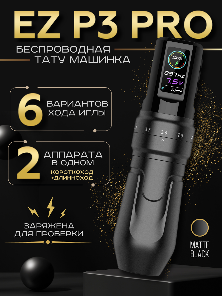 10 цен на Беспроводная тату машинка EZ P3 PRO Matte Black с регулируемым ходом иглы