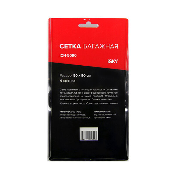 Сетка-карман в багажник iSky, 50x90 см (4 крюка) арт. iCN-5090 информация: