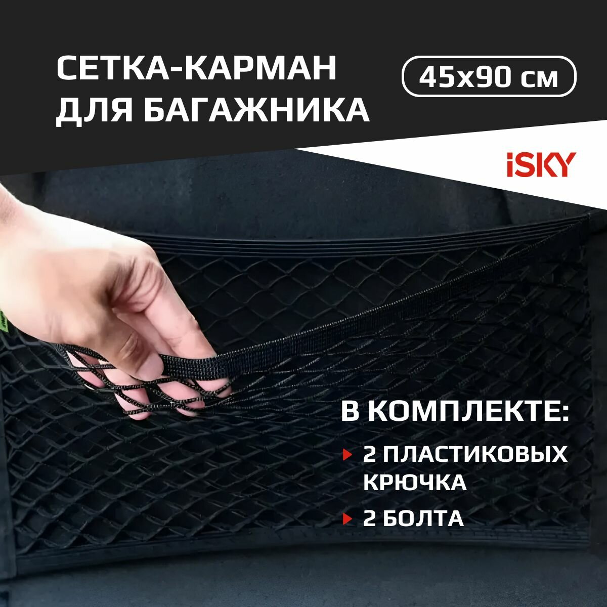 Сетка-карман в багажник iSky, 45x90 см (2 пласт. крюка, 2 болта) арт. iCN-4090 информация: