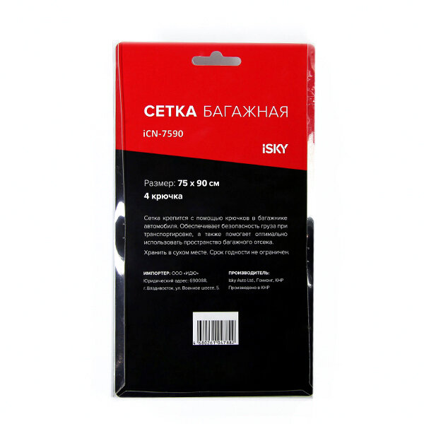 Сетка-карман в багажник iSky, 75x90 см (4 крюка) арт. iCN-7590 информация:
