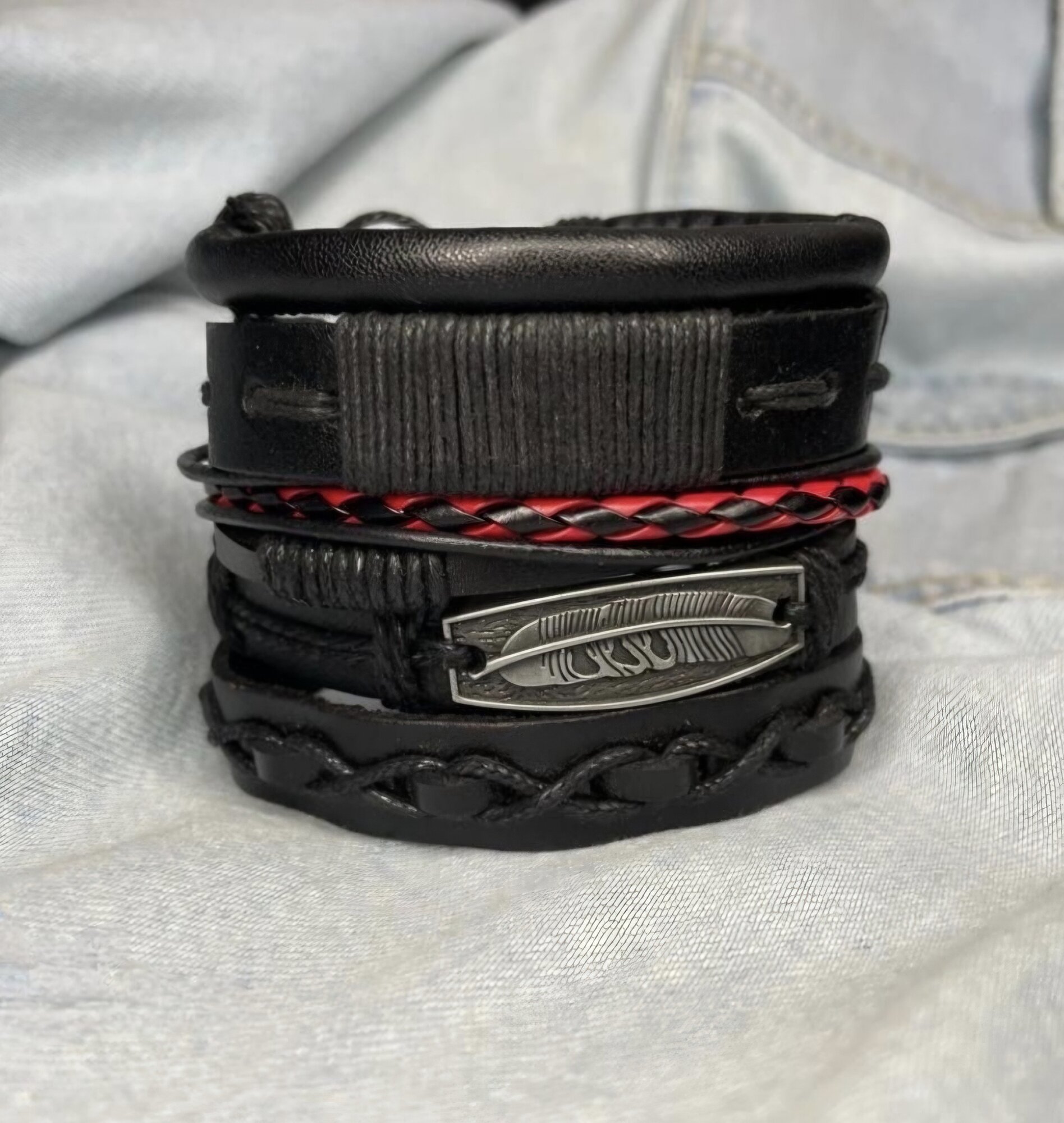 Отзывы на Браслет на руку на завязках 5 в 1 плетеный, перо/косички, унисекс, мужской/женский/для подростков, сплав+экокожа, черный