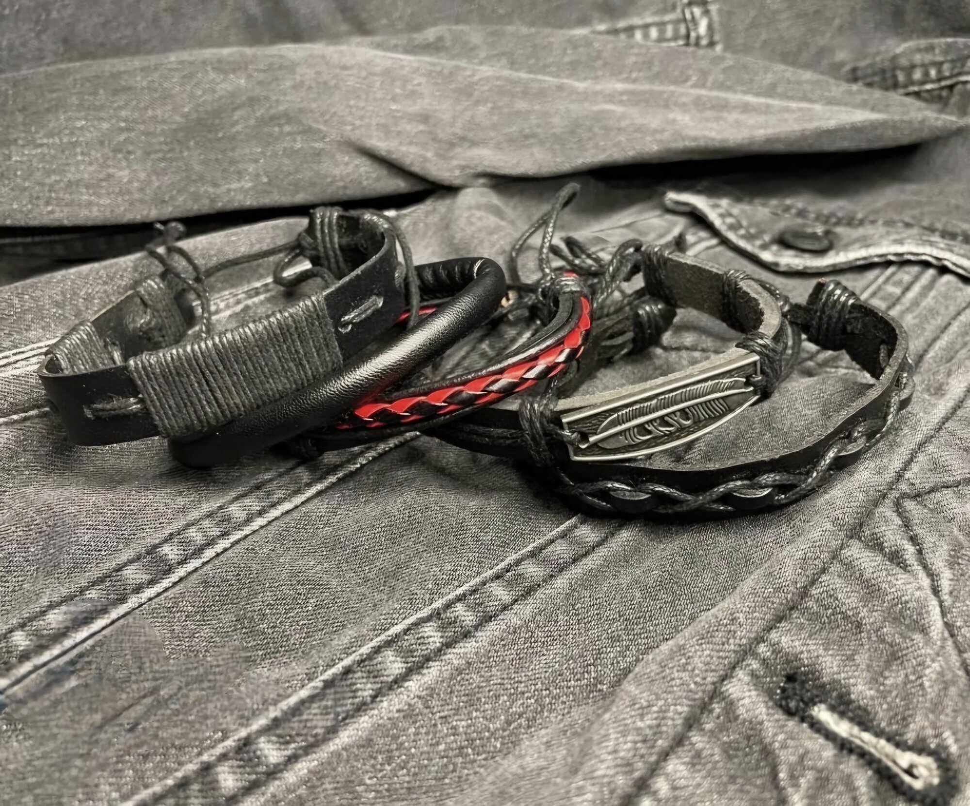 | Дополнительная информация | Браслет на завязках безразмерный, кожаный, бижутерия, украшение на руку, комплект\набор 5 в 1 |