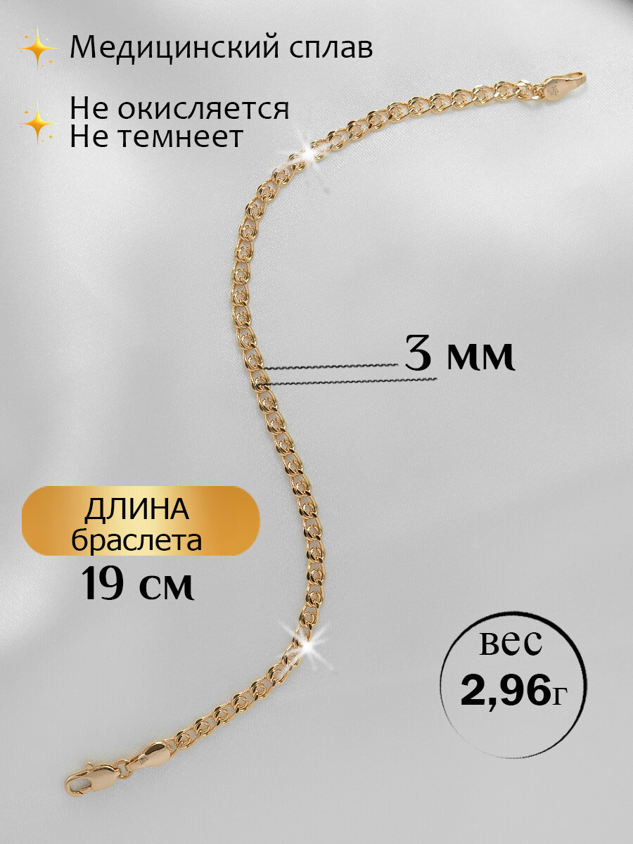 Браслет-цепочка SLOVALIO, 1 шт., размер 19.05 см, размер L, золотистый 913 ₽