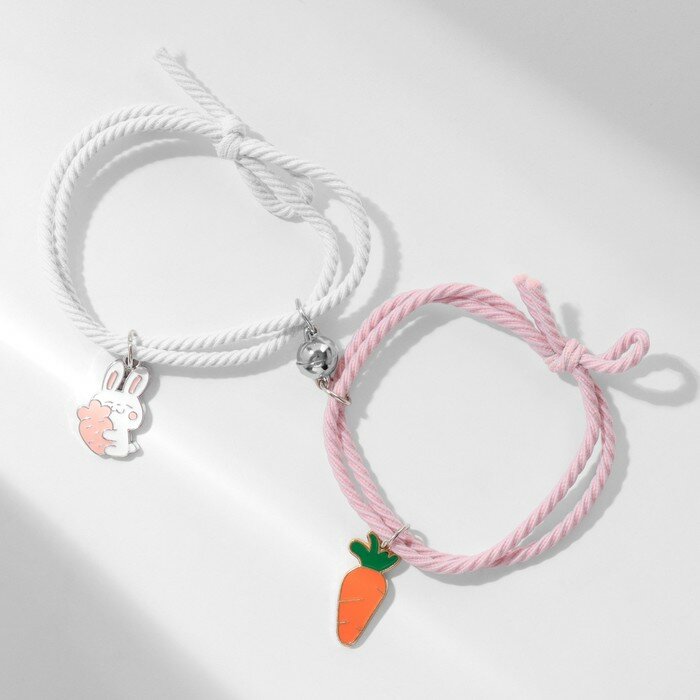 10 цен на Браслеты «Неразлучники» ассоль, заяц и морковка, цвет бело-розовый