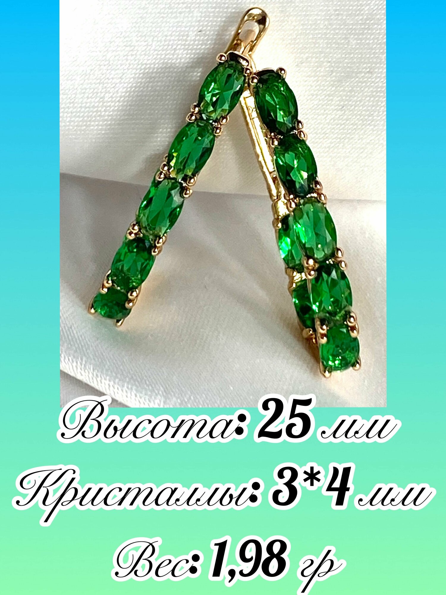 Серьги-дорожка с зелеными кристаллами информация: