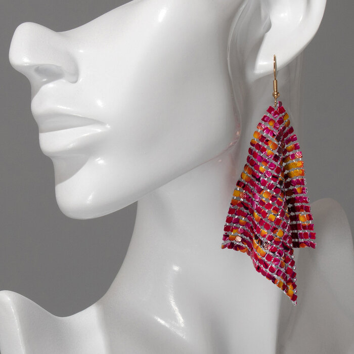 Серьги висячие «Ромб» кольчуга, цветы яркие, цвет жёлто-розовый, 9 см информация: