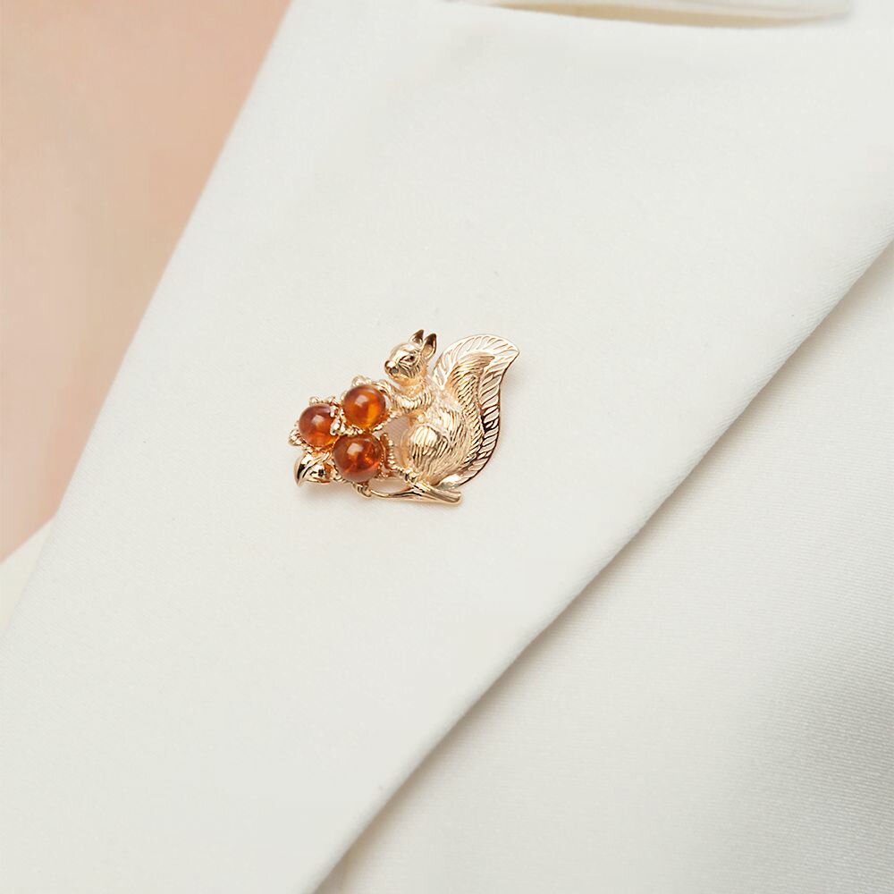 10 цен на PLATINA Брошь «Белка» из красного золота с янтарём и эмалью