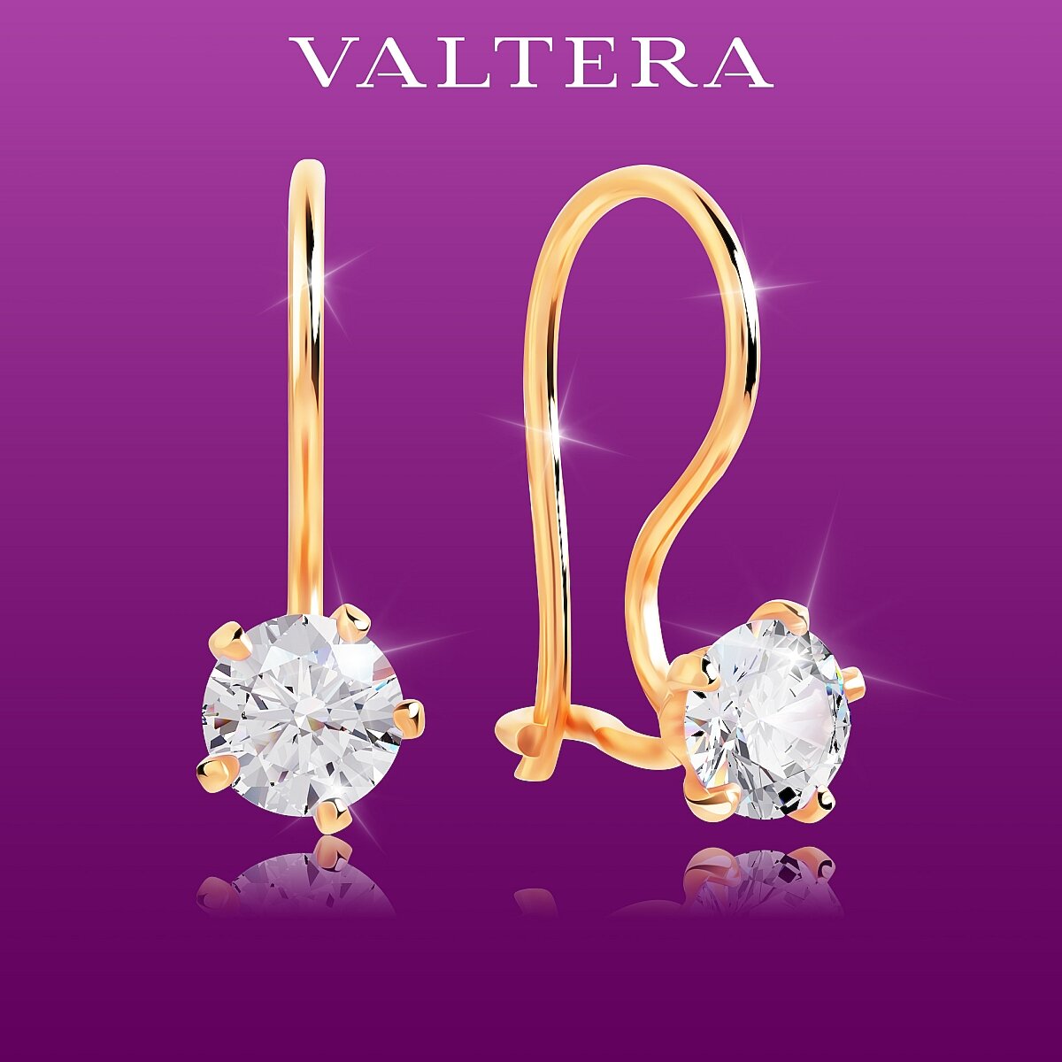 Серьги VALTERA, серебро, 925 проба, золочение, фианит, размер 15 мм, длина 1.5 см, , бесцветный, золотистый 690 ₽