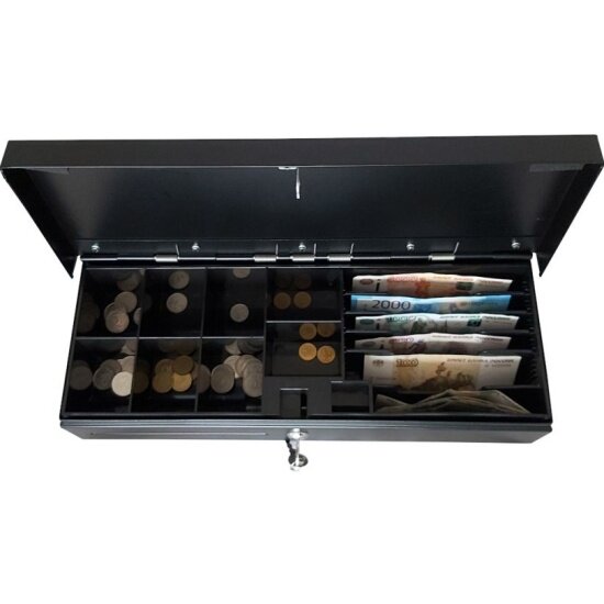 Ящик денежный для кассира "Меркурий 100", большой, 432х428х88 мм, отделений для монет - 8, для купюр - 5