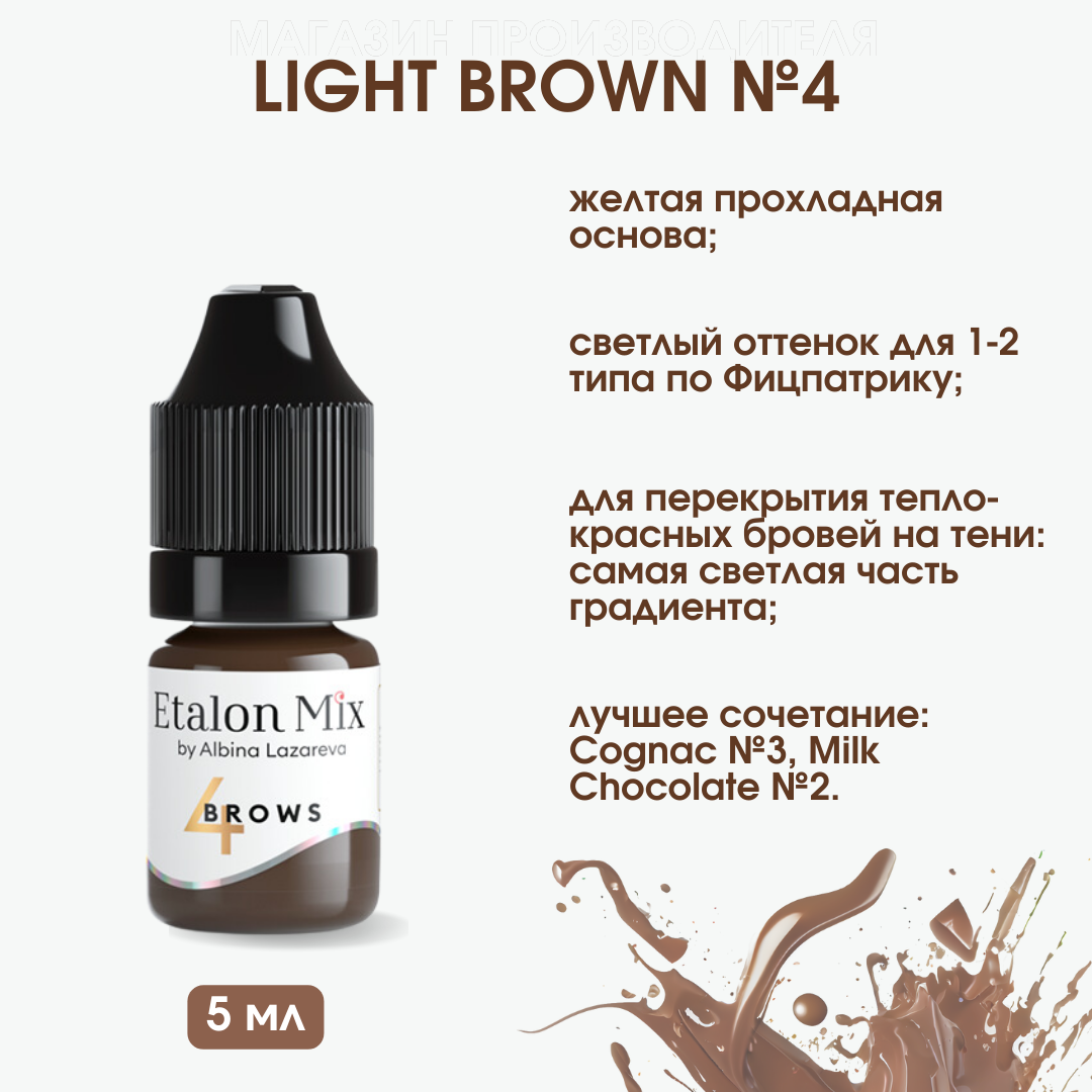 10 цен на Etalon Mix Пигмент для татуажа бровей №4 "Русый", 5мл. Пигменты Альбины Лазаревой.