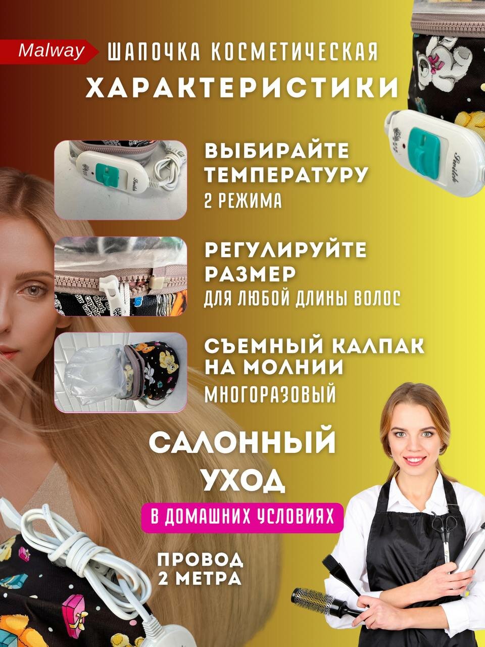 Термошапка электрическая Malway "Ночная романтика", для масок, для волос экокожа, 700 ₽
