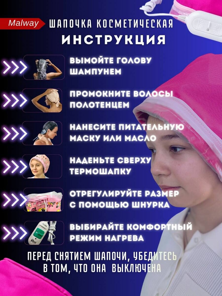 Термошапка электрическая Malway "Ночная романтика", для масок, для волос экокожа, 700 ₽