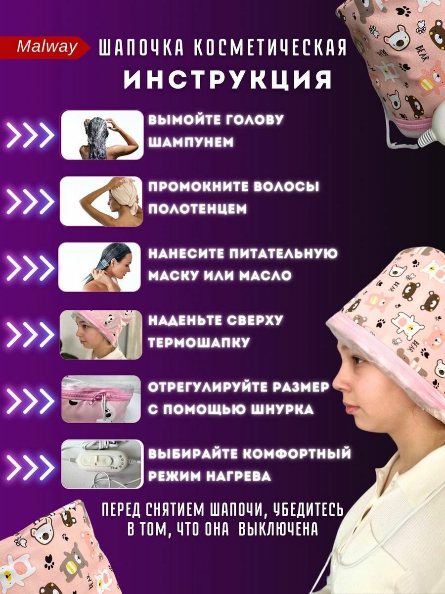 Термошапка электрическая Malway "Красивый сон", для масок, экокожа, 700 ₽