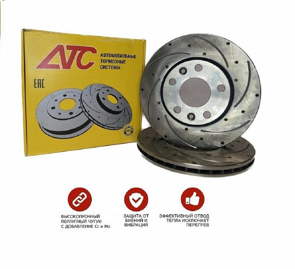 Диски тормозные Гранта Калина ВАЗ 2110 R13 Спорт передние вентилируемые ATC (к-т 2шт)