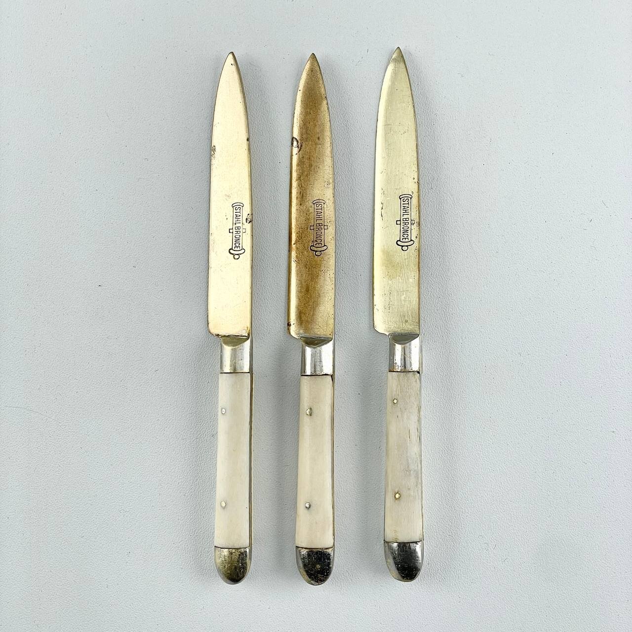 Старинные ножи для фруктов "Золото". Бронза Stahl Bronce. Германия, нач. XX века.