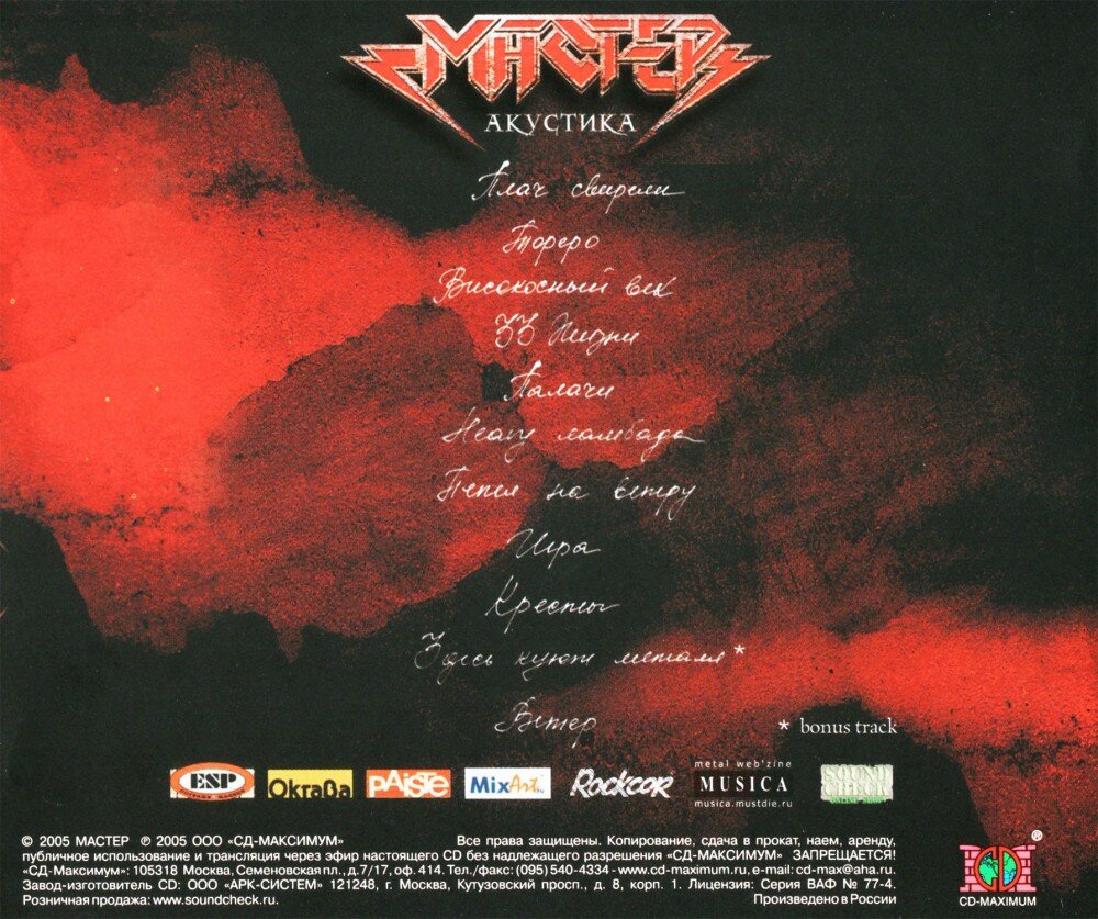 Мастер. Акустика (CD) (2005 год, СД диск, CD Box, Россия, Рок и Альтернатива) информация:
