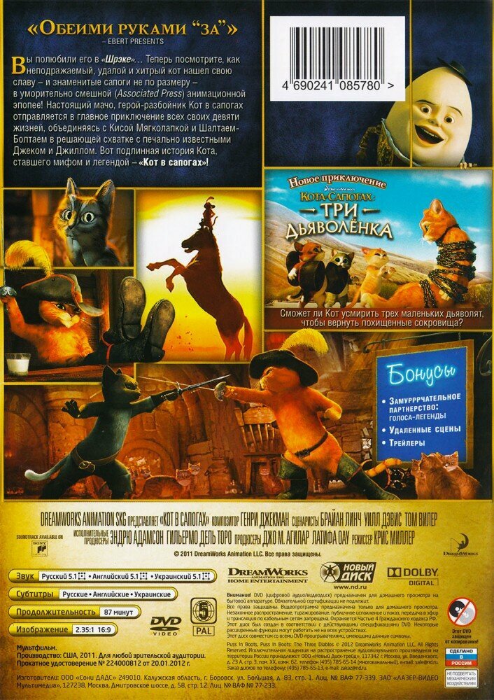 Отзывы на Шрэк -1,2,3,4, Мороз / Кот в сапогах. Коллекция мультфильмов (6 DVD) (2001 год, ДВД диск, DVD Box)