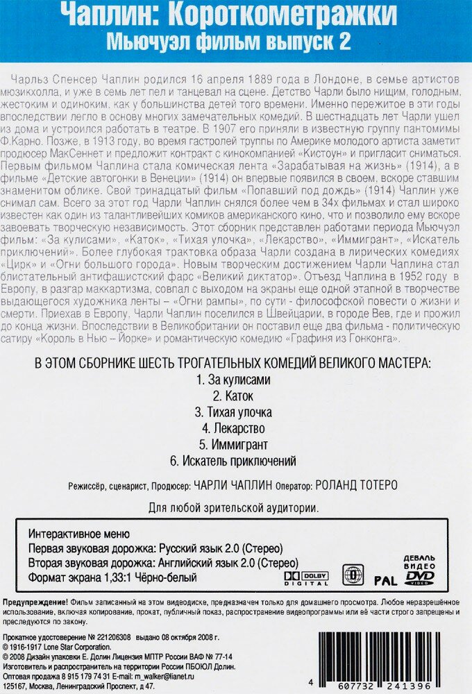 10 цен на Чарли Чаплин: Короткометражки Мьючуэл фильм, выпуск 1-2 (2 DVD) (1916 год, ДВД диск, DVD Box + картон)