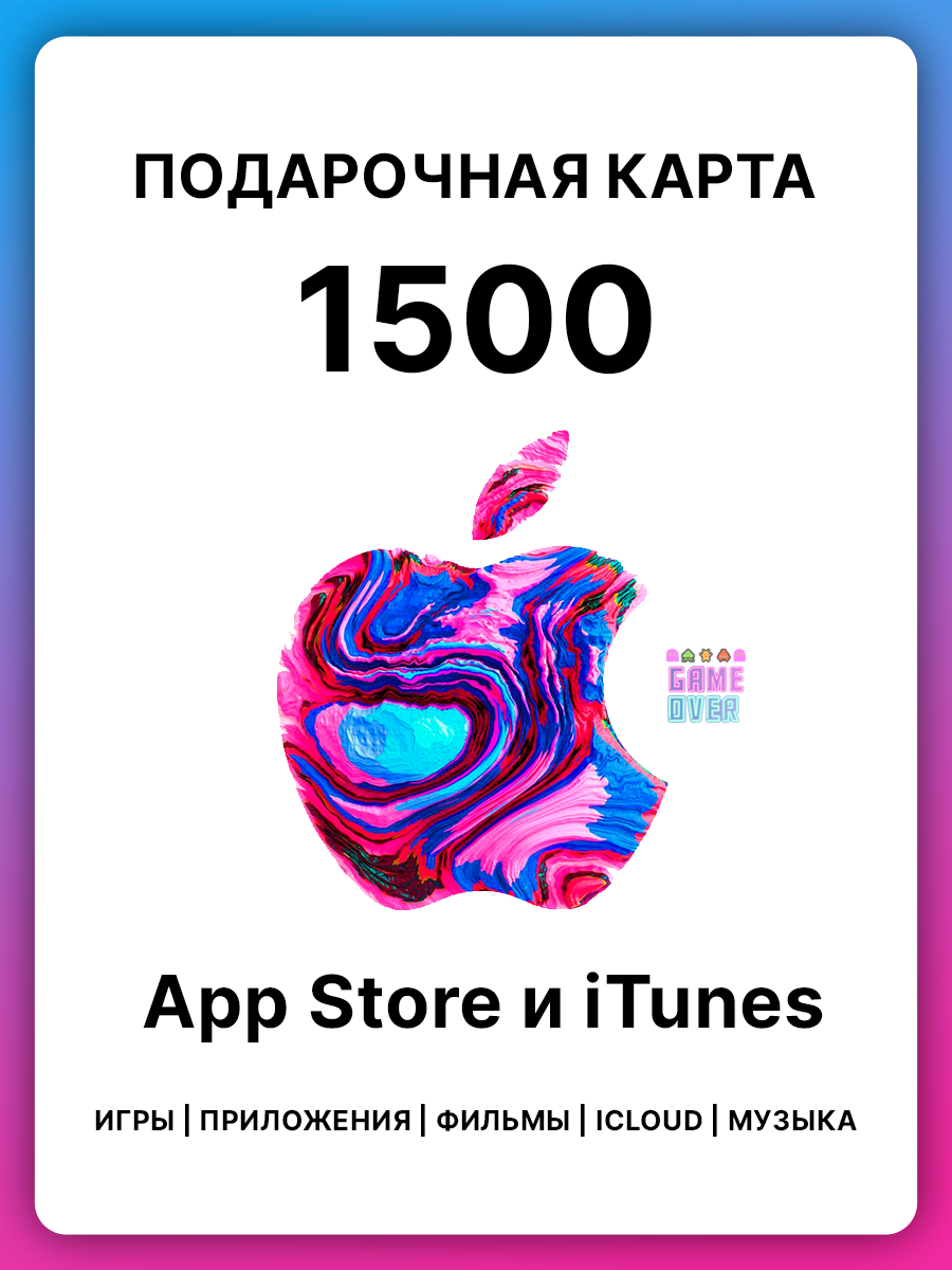 Подарочная карта iTunes 1500 рублей, Карта пополнения Apple, Пополнение счёта на 1500 рублей App Store & iTunes информация: