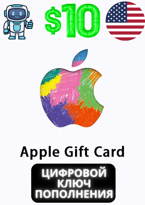 Подарочная карта Apple/ Itunes 10 USD // Карта оплаты на пополнение баланса Apple ( пополнение счета на 10$ ) информация: