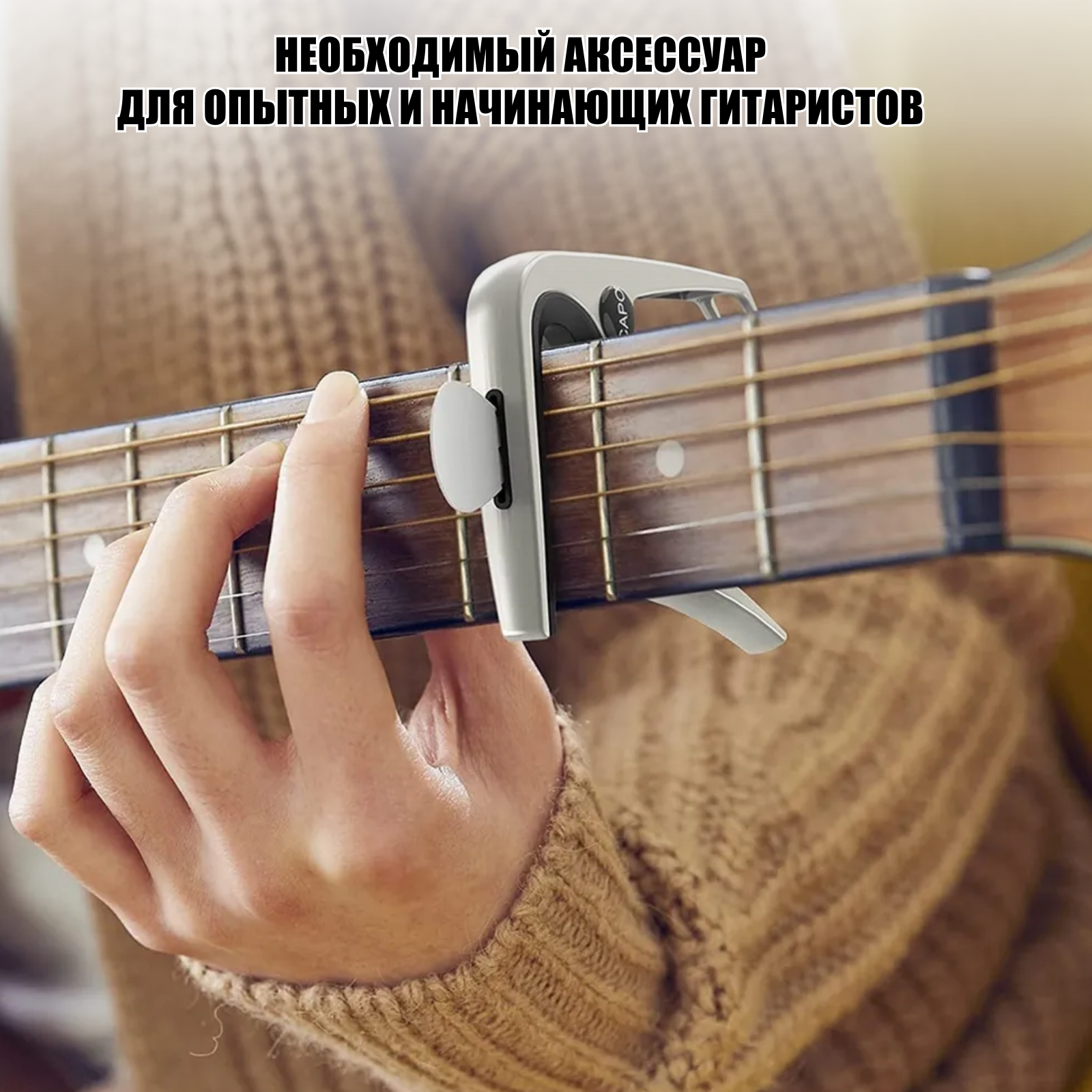 | Подробная комплектация | - каподастр - 1 шт; - медиаторы - 3 шт; - сурдина для акустической гитары - 1 шт. -напальчники силиконовые универсальные черные для игры на гитаре, размер XXS, XS, S, M, L- 5 шт; |