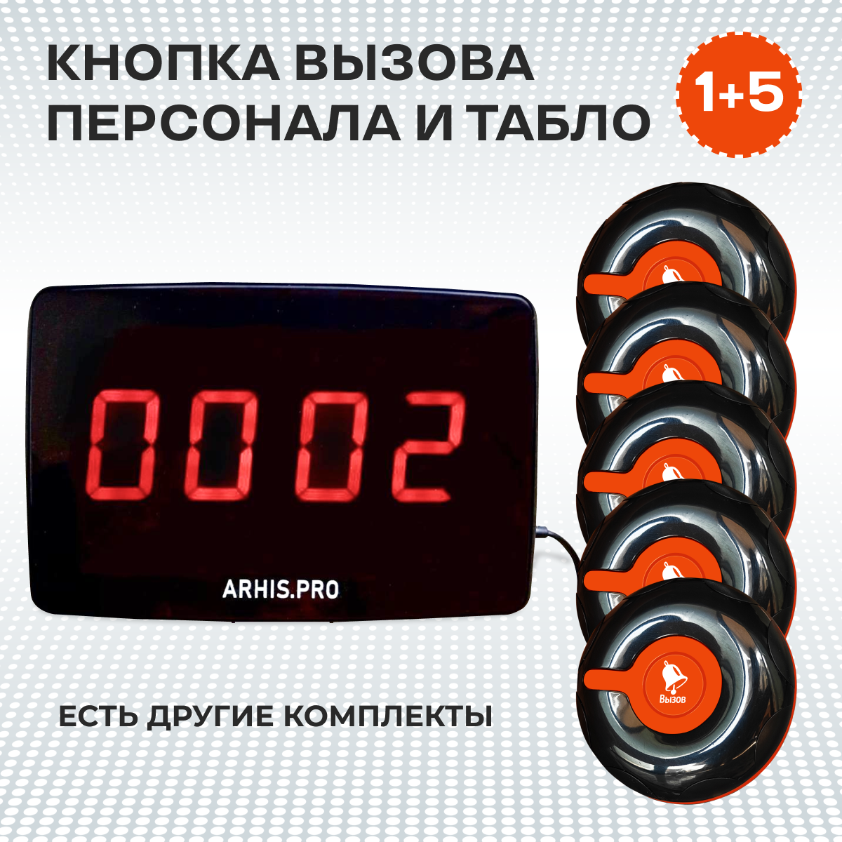 Табло отображения вызова и оповещения персонала - 1 шт., кнопка вызова персонала - 5 шт. Радиус 150 м. информация: