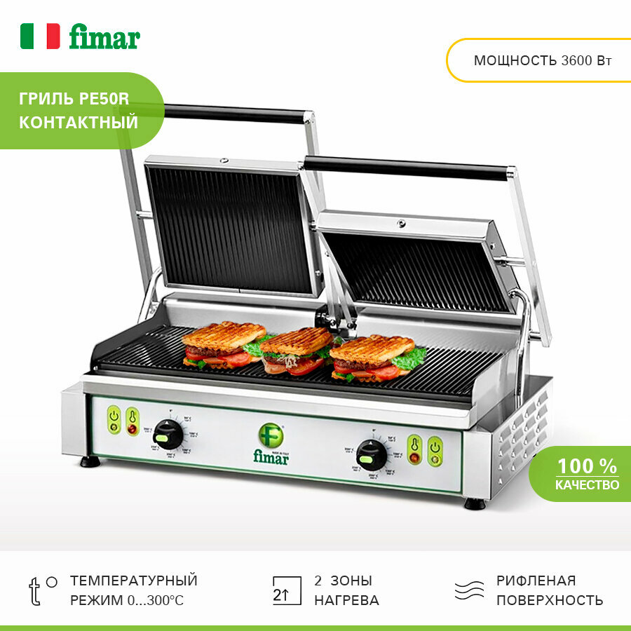 Гриль электрический прижимной с двумя зонами Fimar, арт. PE 50 R. Электрогриль контактный информация: