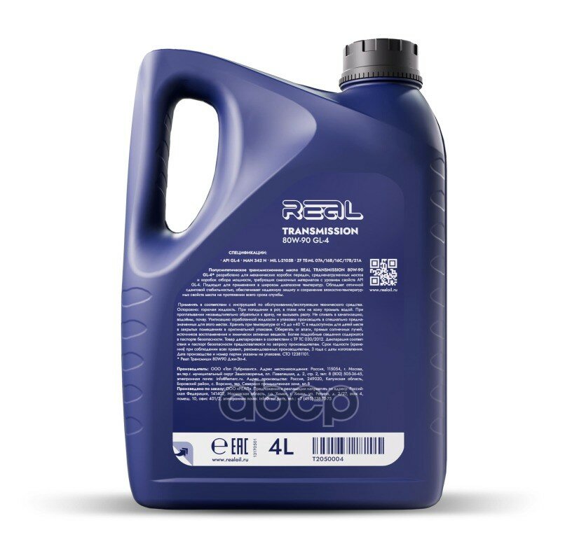 Масло Трансмиссионное Real Transmission 80W90 Gl-4 4Л Api Gl-4 Zf Te-Ml 17B, Zf Te-Ml 16B, Zf Te-Ml 07A, Zf Te-Ml 21A, Zf Te-... информация: