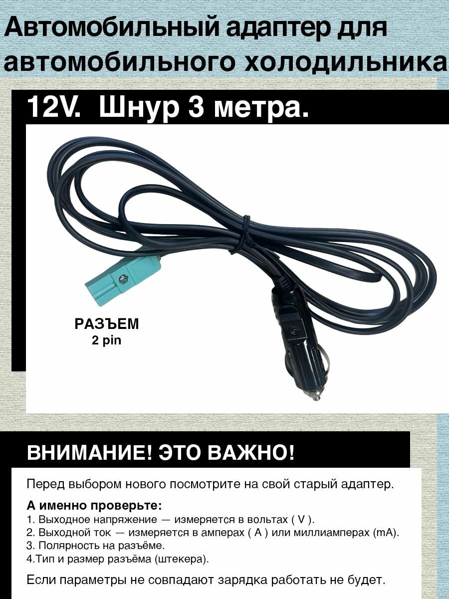 10 цен на Автомобильный адаптер 12V - 2pin 3 метра, для подключения автомобильного холодильника AVS, Mystery, Vitek, нагревателя и др.
