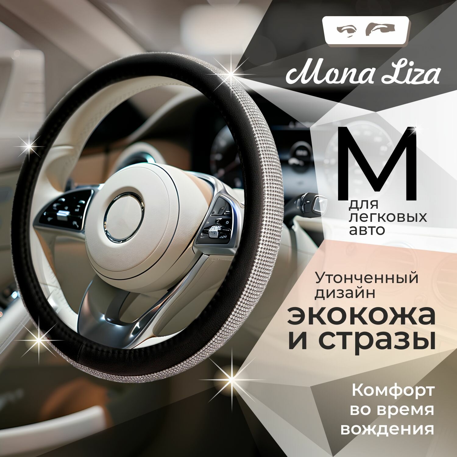 10 цен на Оплетка на руль MONA LISA Infinity, чехол на руль автомобиля со стразами, цвет серебро, 38 см