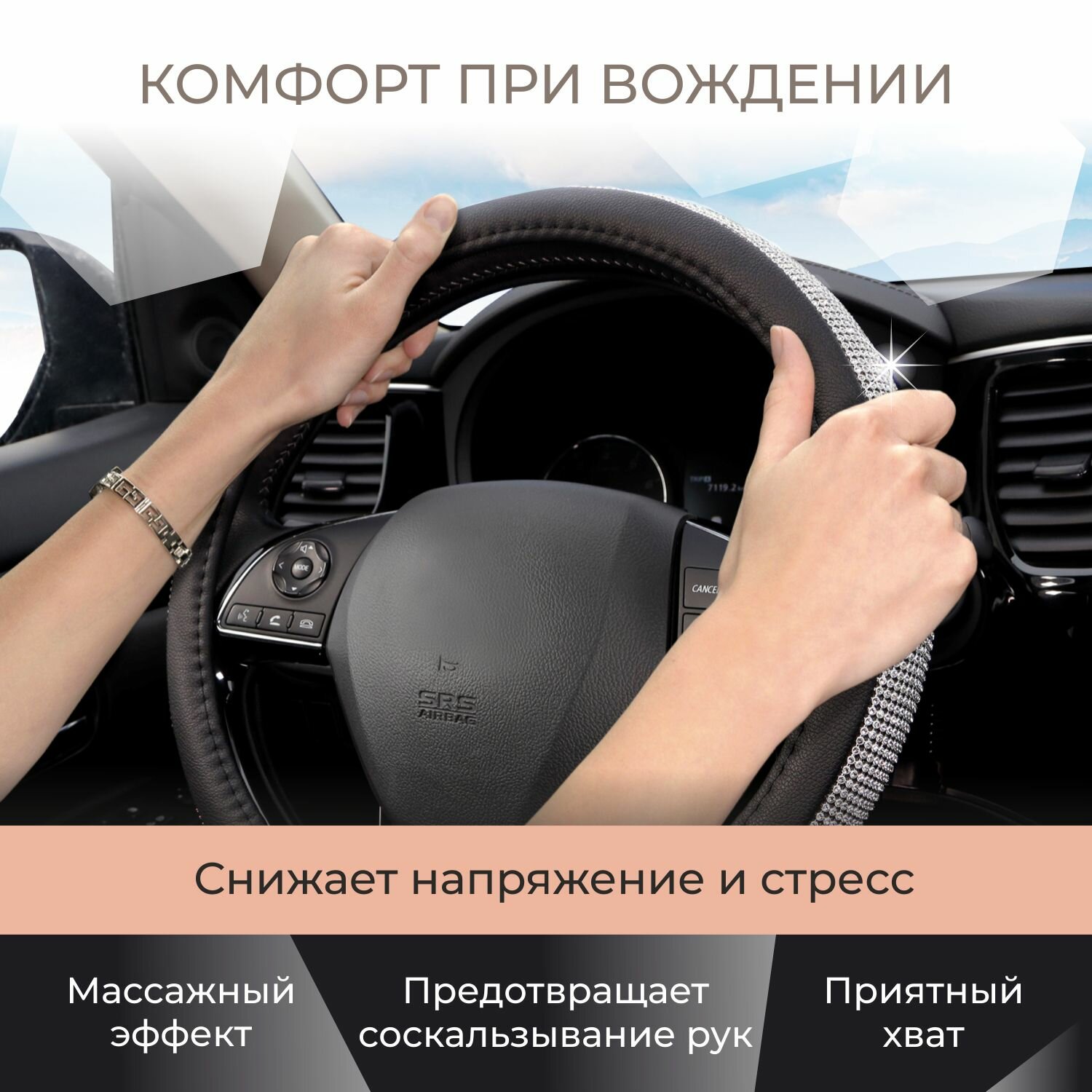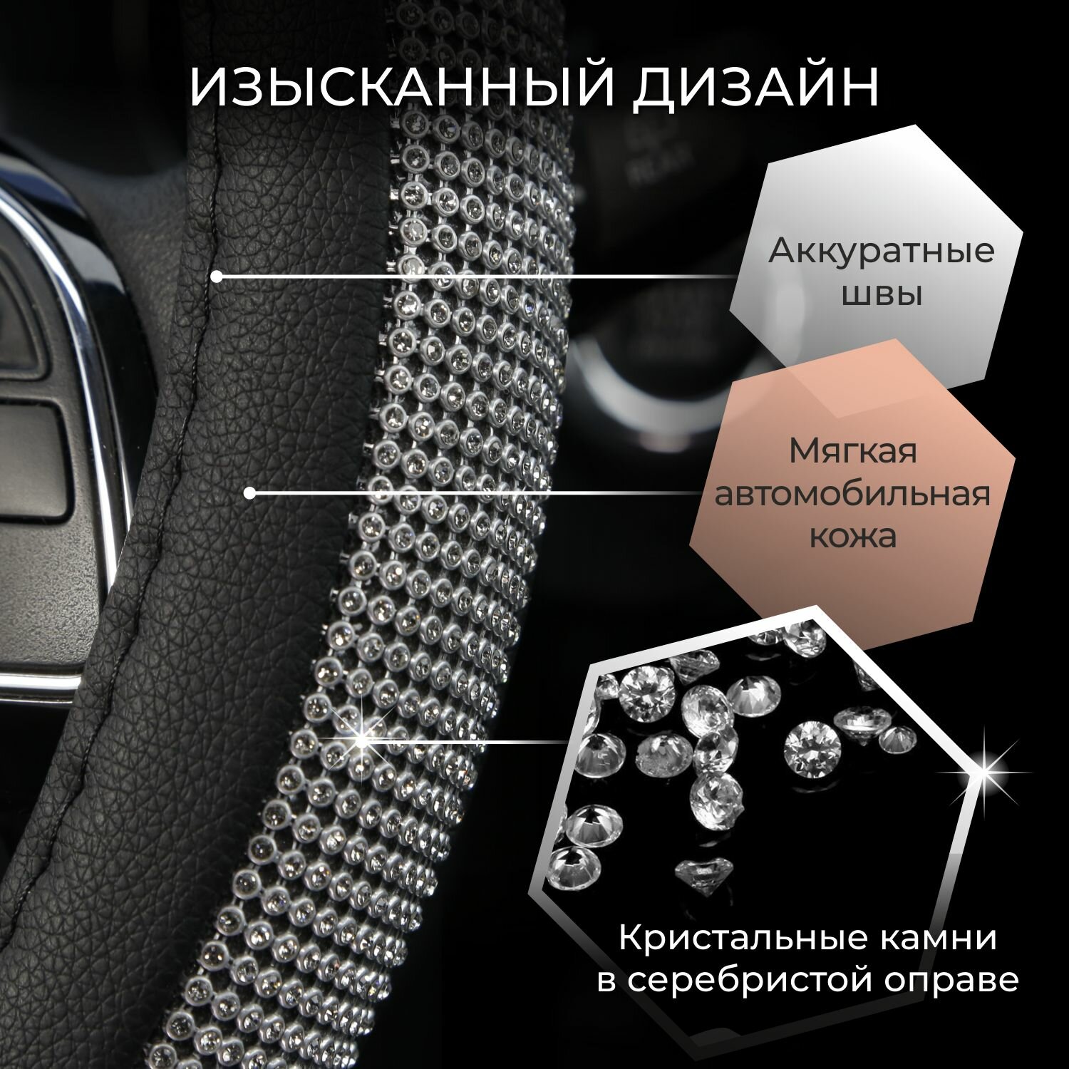 Отзывы на Оплетка на руль MONA LISA Infinity, чехол на руль автомобиля со стразами, цвет серебро, 38 см