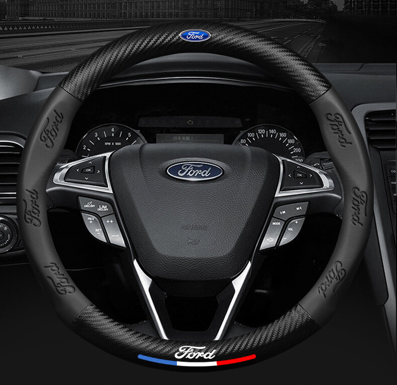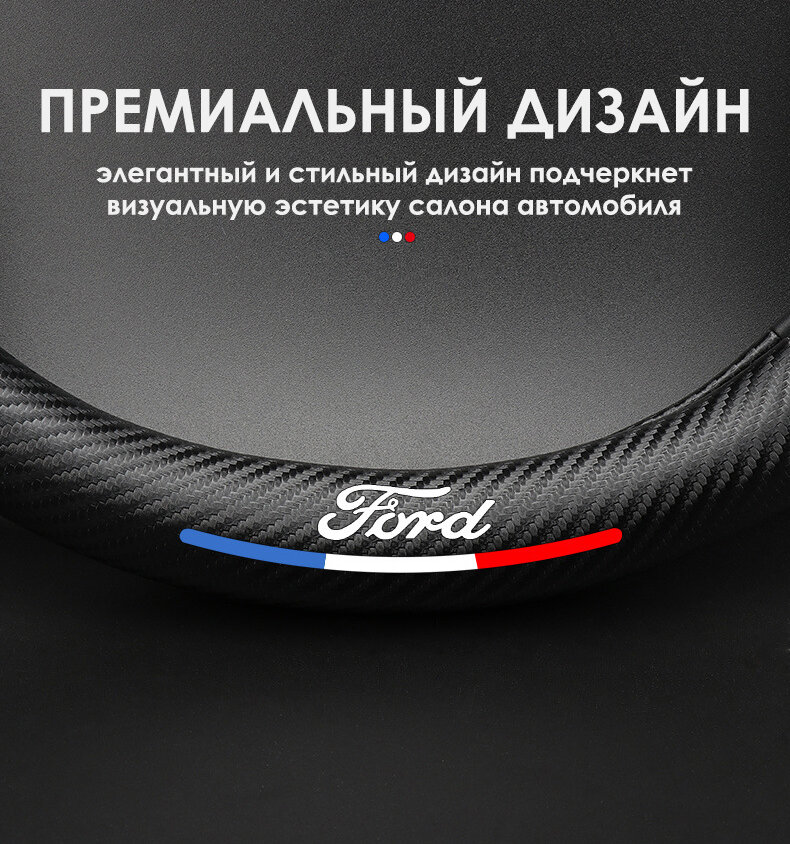 10 цен на Оплетка на руль Ford (диаметр 37-38 см) / Автомобильный карбоновый спортивный черный чехол на руль