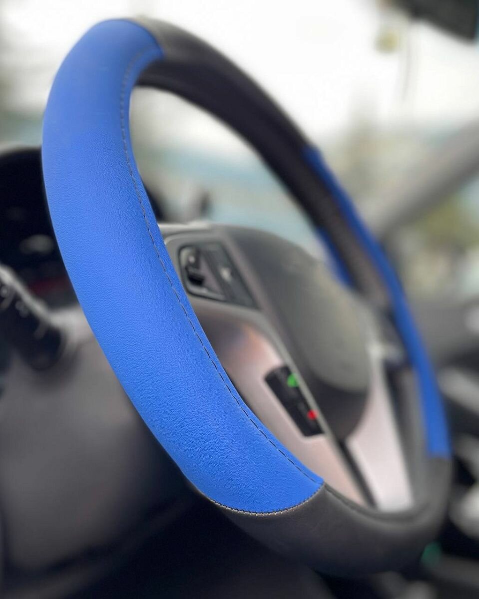 10 цен на Оплетка на руль Хендай Солярис (2017 - 2020) седан / Hyundai Solaris, Искусственная кожа (высокого качества), Черный с синим