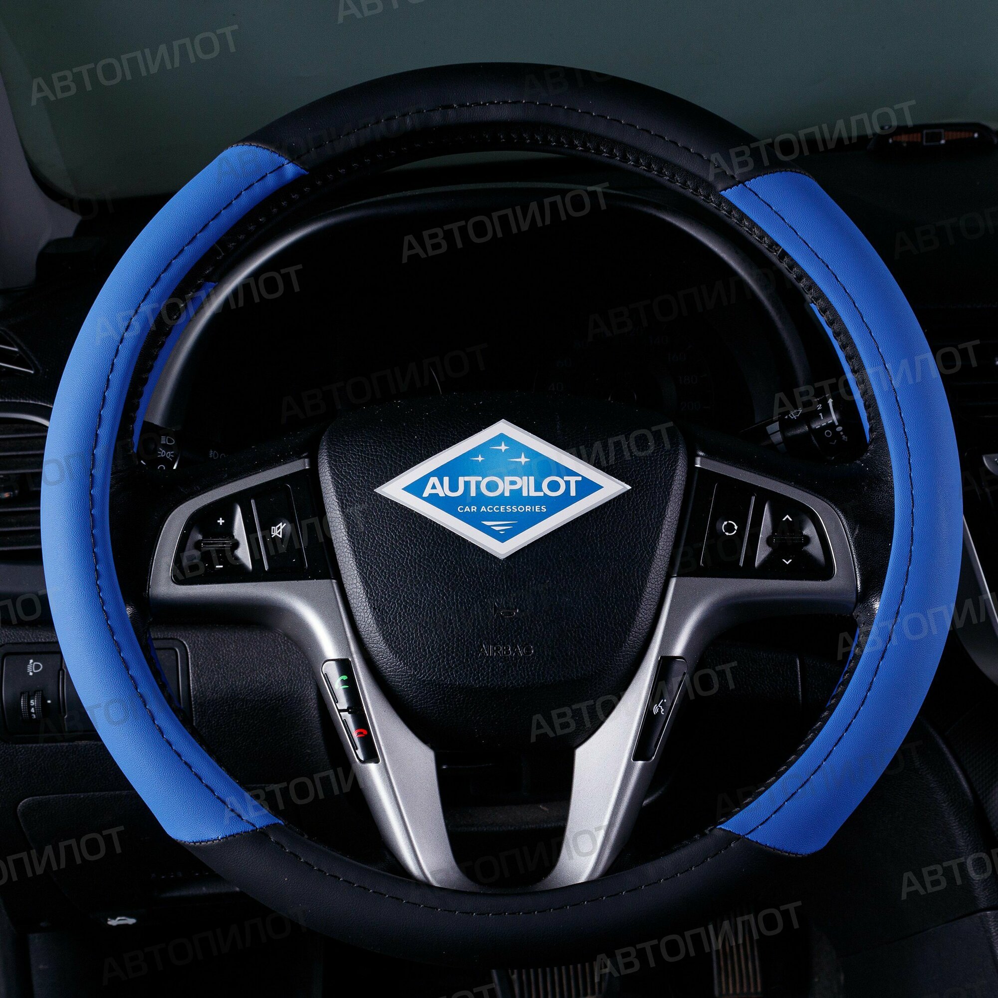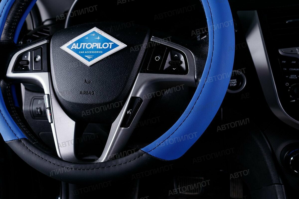 Отзывы на Оплетка на руль Хендай Солярис (2017 - 2020) седан / Hyundai Solaris, Искусственная кожа (высокого качества), Черный с синим