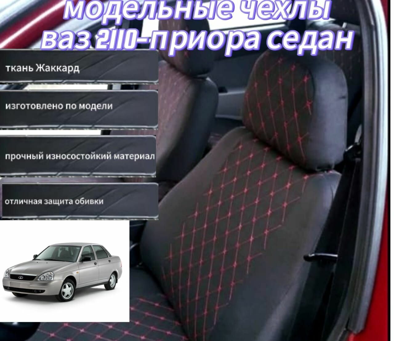10 цен на Авточехлы модельные ВАЗ 2110, Приора 1. Жаккард, красная строчка, рисунок Бабочка. Весь салон