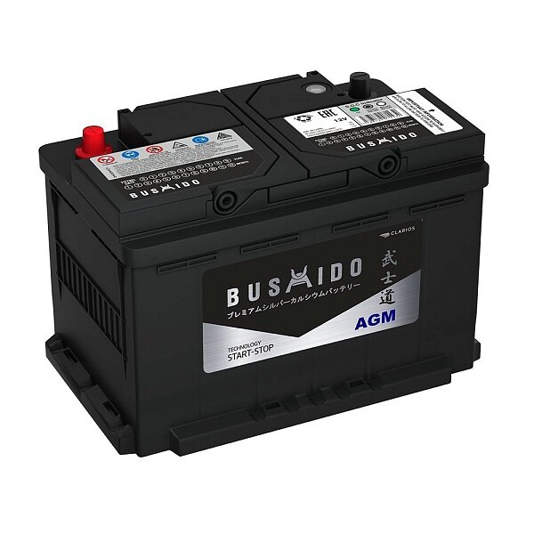 Аккумулятор автомобильный BUSHIDO AGM 65.0 Ah 680 A ОП (242x175x190) L2 242x175x190