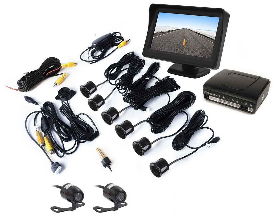 10 цен на MasterPark 041-6-P парктроник с камерой заднего хода с двумя камерами, шестью датчиками и монитором 4.3 дюйма подарочная упаковка