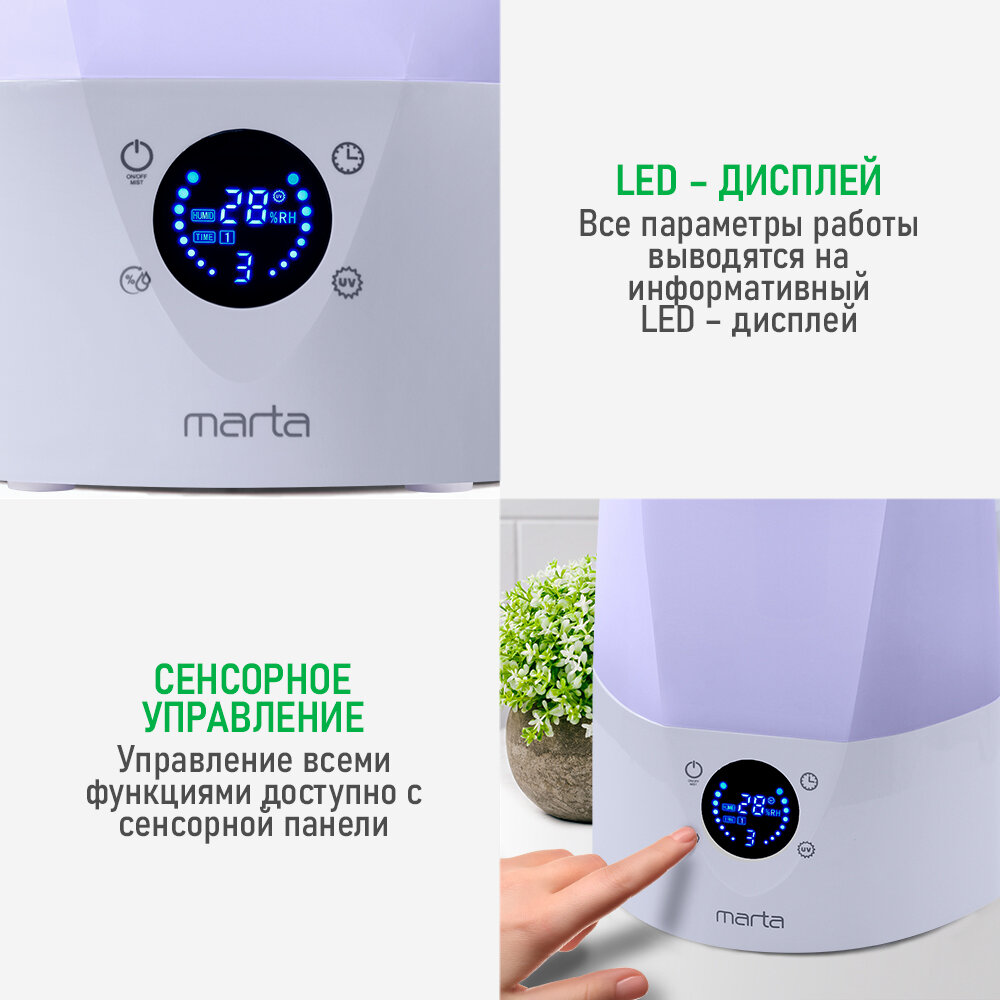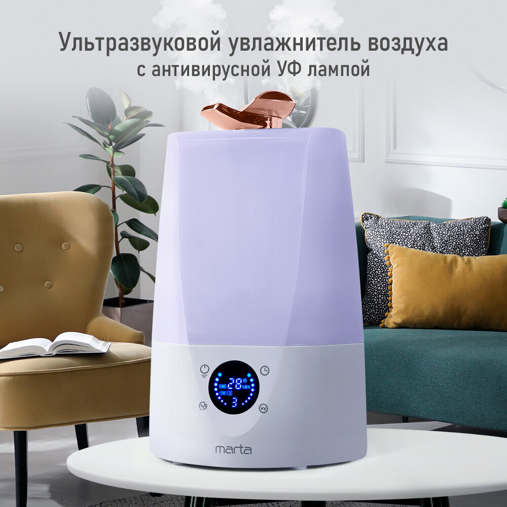 10 цен на Увлажнитель воздуха с антивирусной УФ-лампой MARTA MT-HF4700B белый/медь