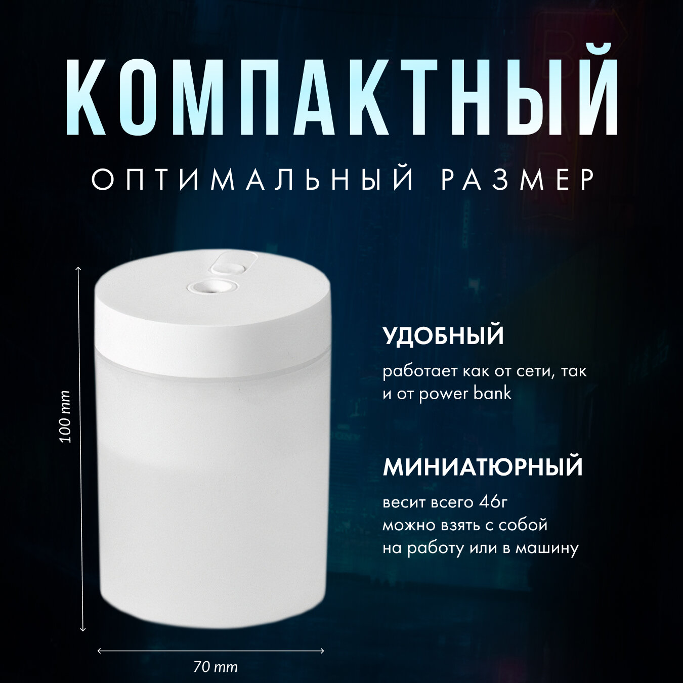 Отзывы на Увлажнитель воздуха ультразвуковой портативный с подсветкой для использования дома, в офисе. Аромадиффузор с питанием от USB. Ночник настольный.
