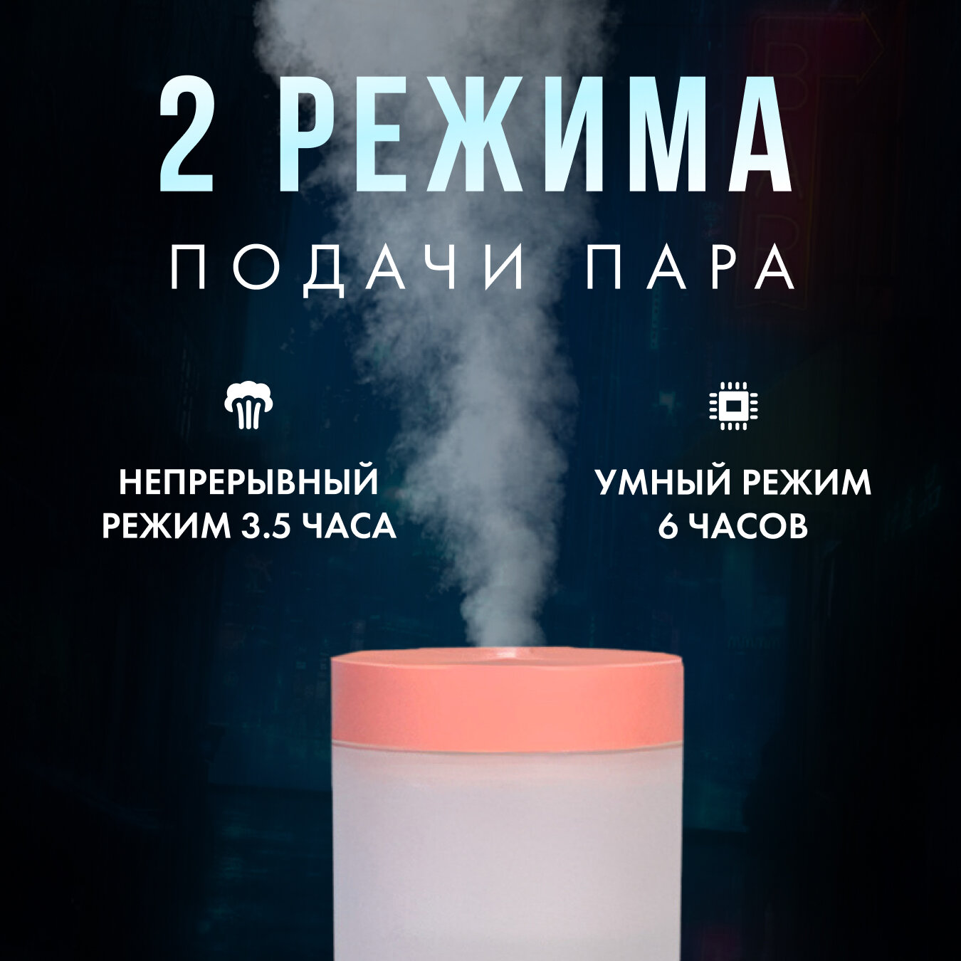 Увлажнитель воздуха ультразвуковой портативный с подсветкой для использования дома, в офисе. Аромадиффузор с питанием от USB. Ночник настольный. информация: