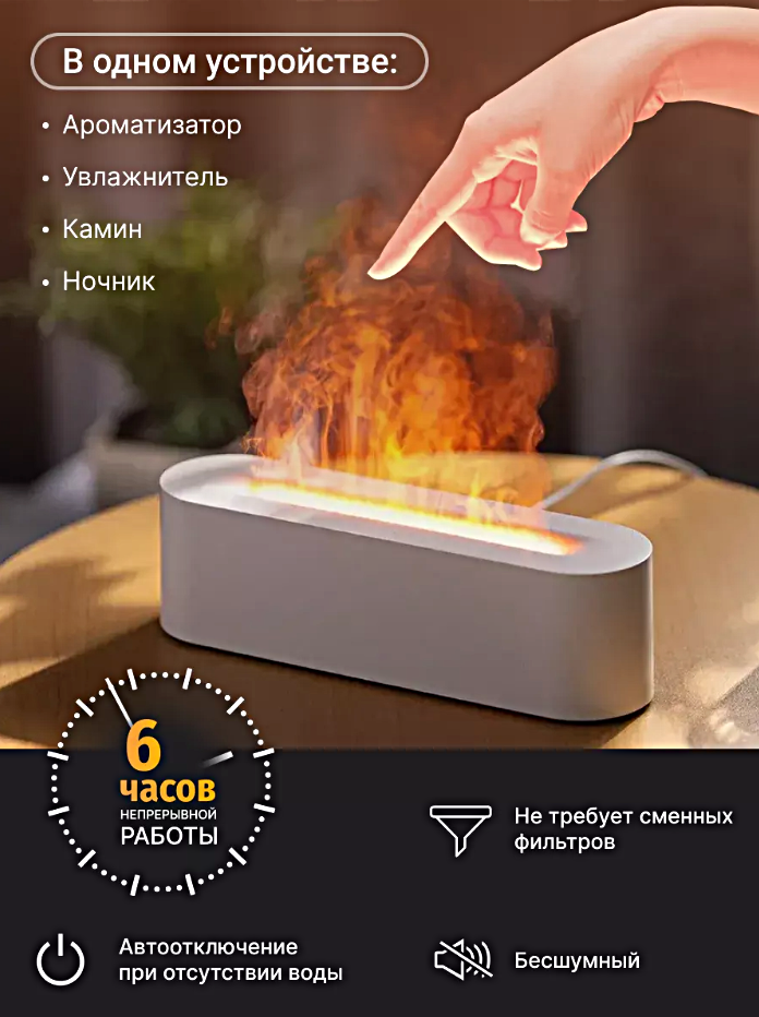 Отзывы на Увлажнитель воздуха ультразвуковой с эффектом пламени длинный, Аромадиффузор ночник для дома, Белый