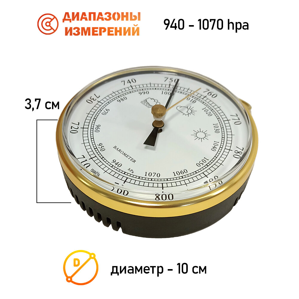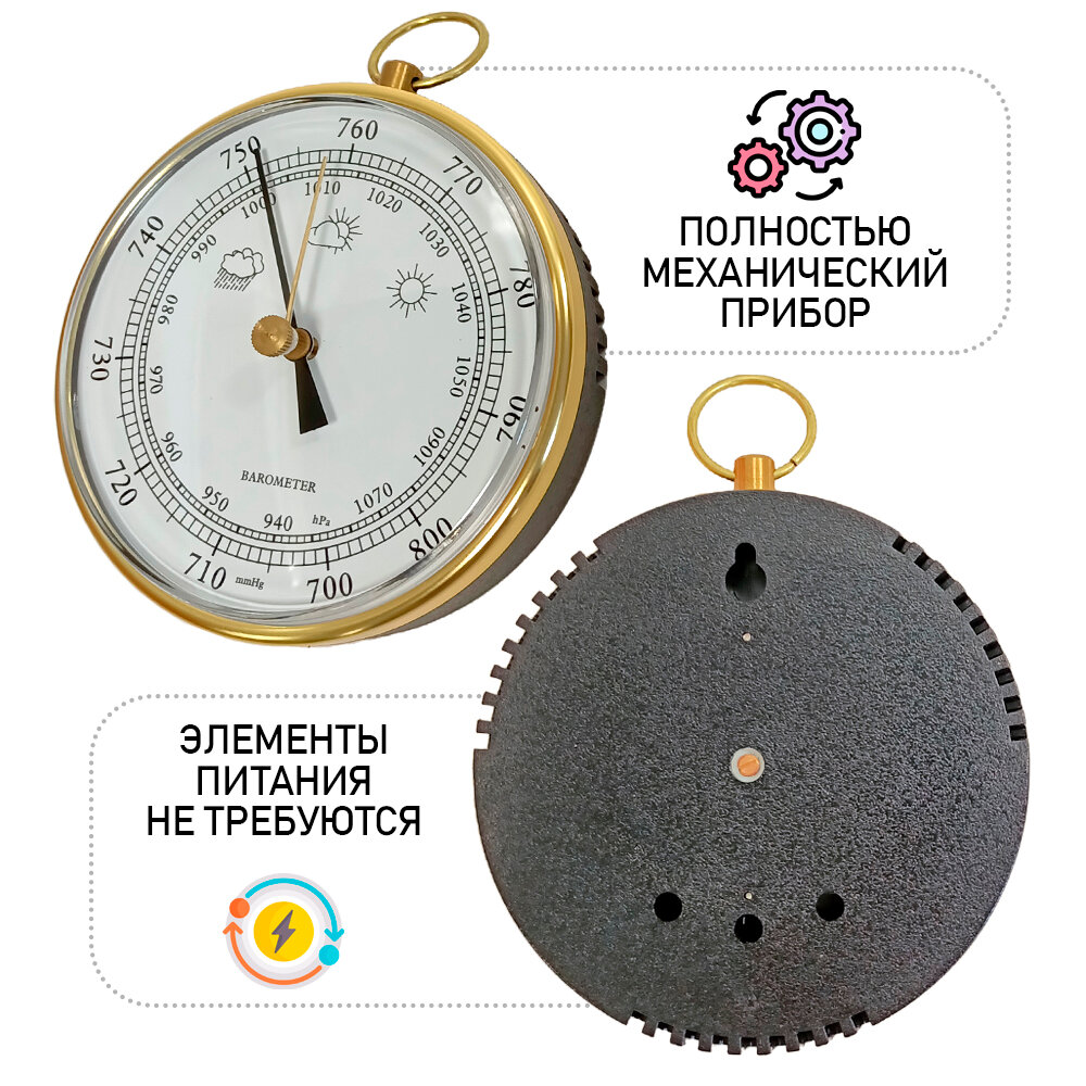 Барометр навесной B-9100 G, домашняя погодная метеостанция, цвет - золотистый информация: