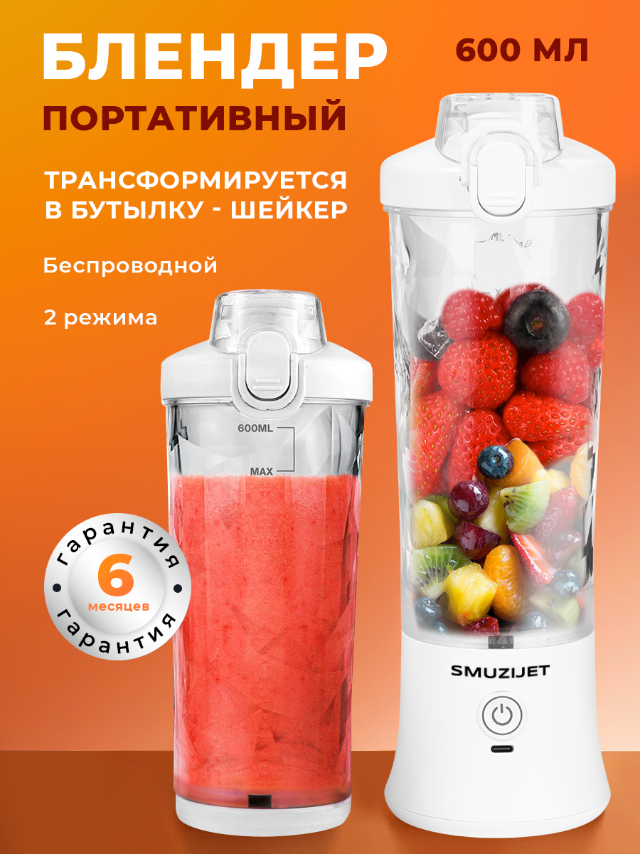 10 цен на Портативный мини блендер SMUZIJET для смузи и коктейлей белый