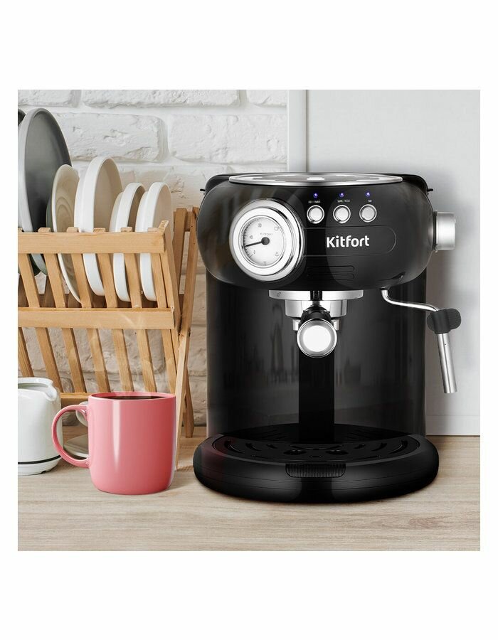 Кофеварка Kitfort КТ-783-3, рожковая, давление 20 Бар, быстрое приготовление, красная