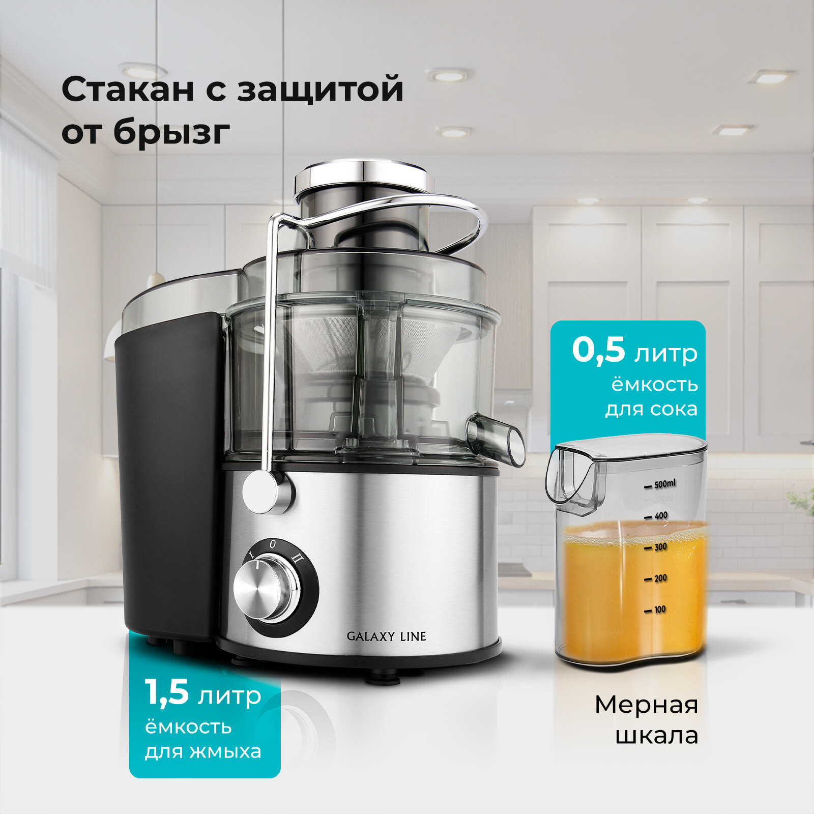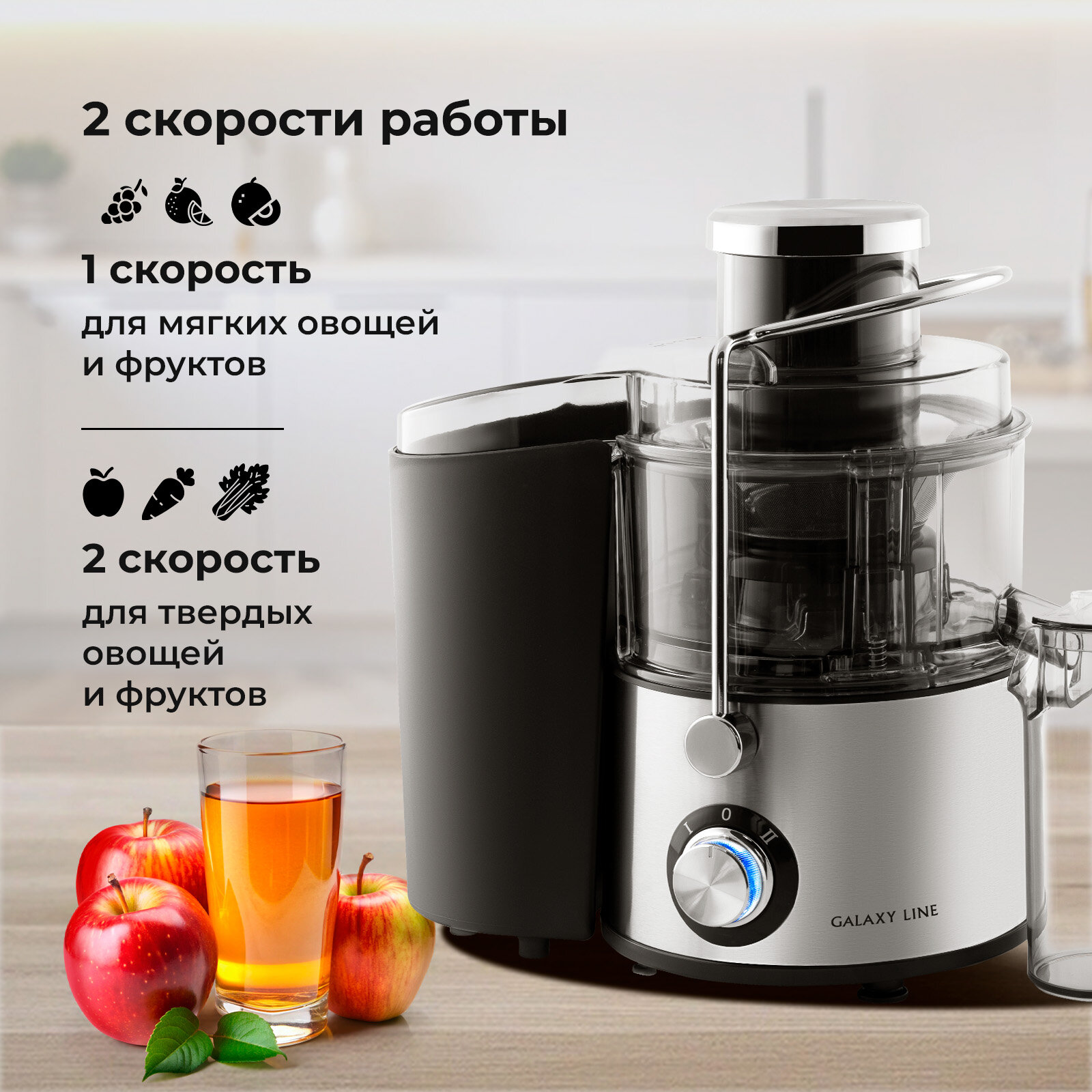 Соковыжималка GALAXY Line GL0810, нержавеющая сталь, 2 скорости, 1,5 литра сока и мякоти информация: