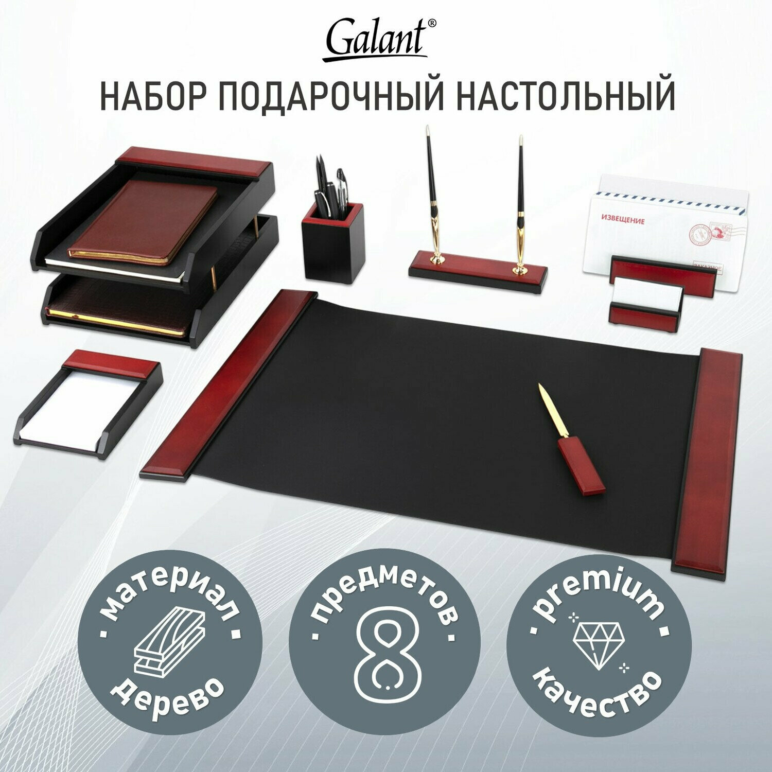 Набор настольный GALANT "Sirius" из дерева, 8 предметов, цвет "красное дерево/чёрный", 238162 18 391 ₽