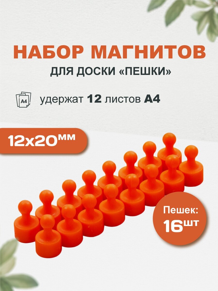 Неодимовый магнит для магнитной доски Пешка Forceberg 12х20 мм, оранжевый, 16 шт информация: